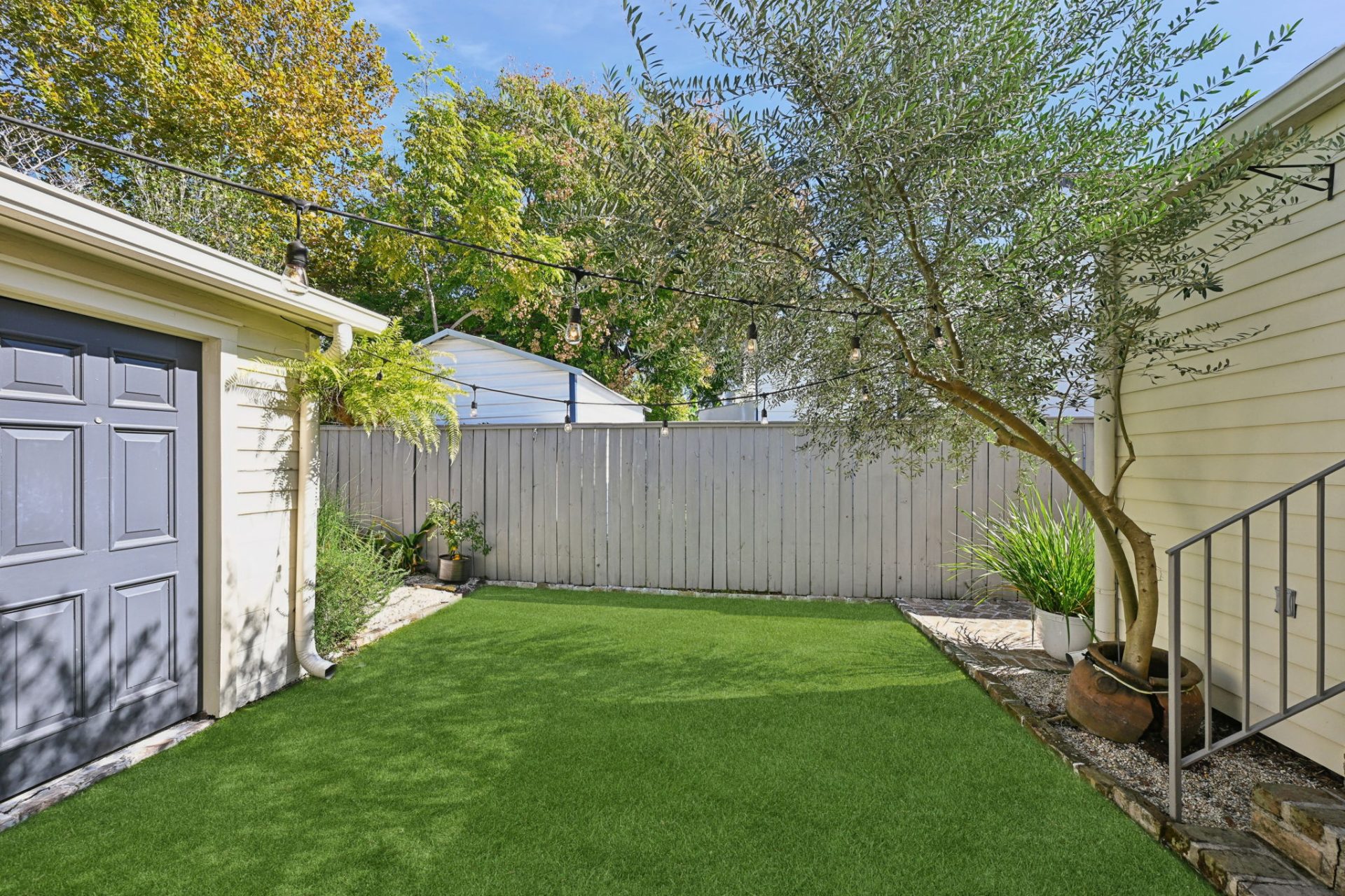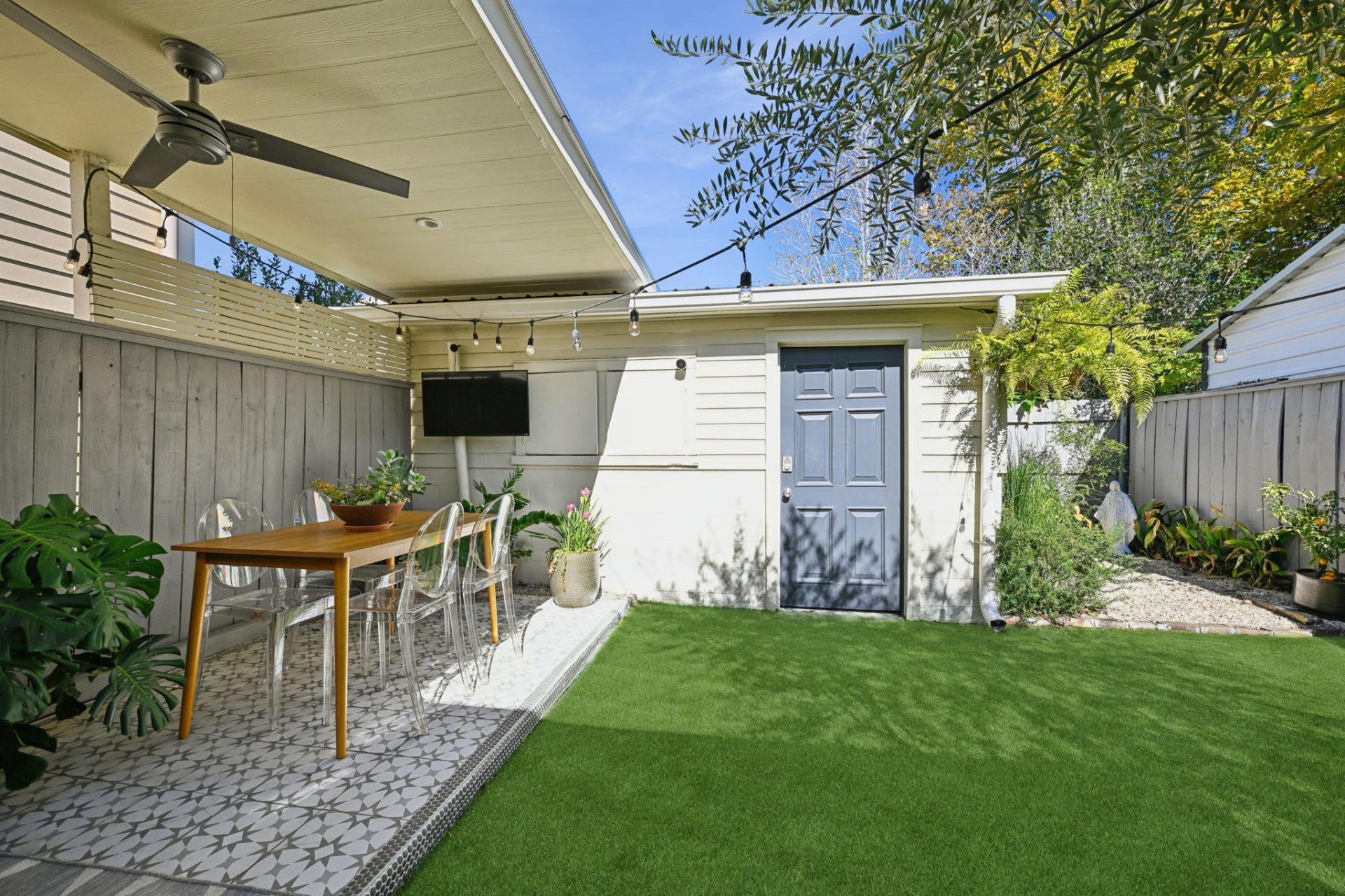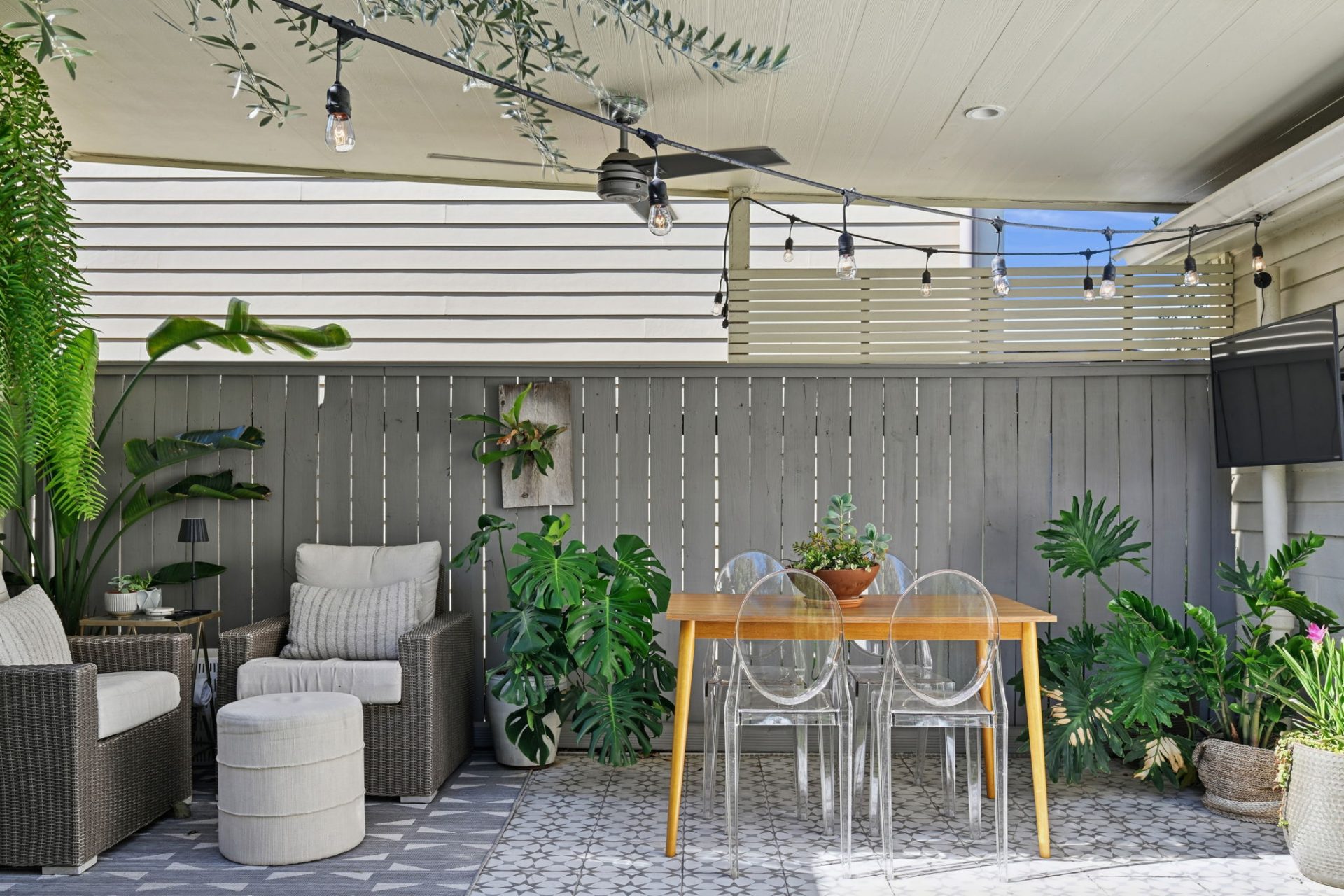 The backyard is absolutely dreamy. The seller pulled up old concrete, added astroturf, and built a covered, tiled patio that feels straight out of a charming European courtyard. Whether you’re sipping morning coffee, sharing wine with friends, or enjoying long, lazy afternoons, this space is designed to be lived in year-round.
