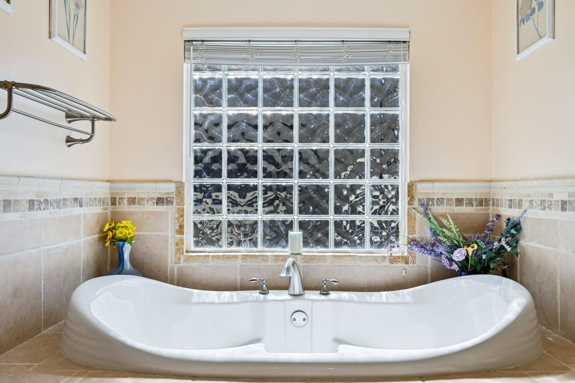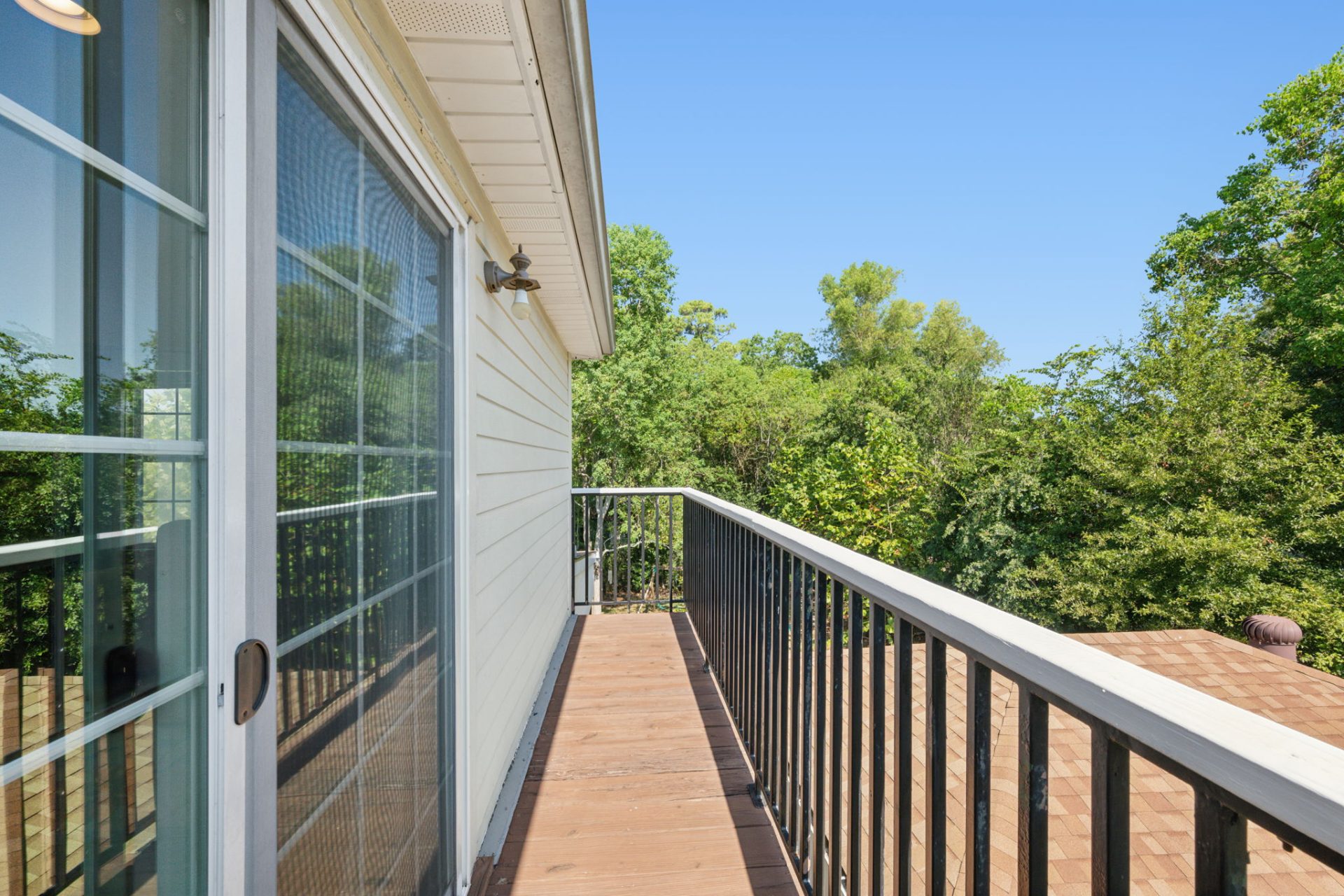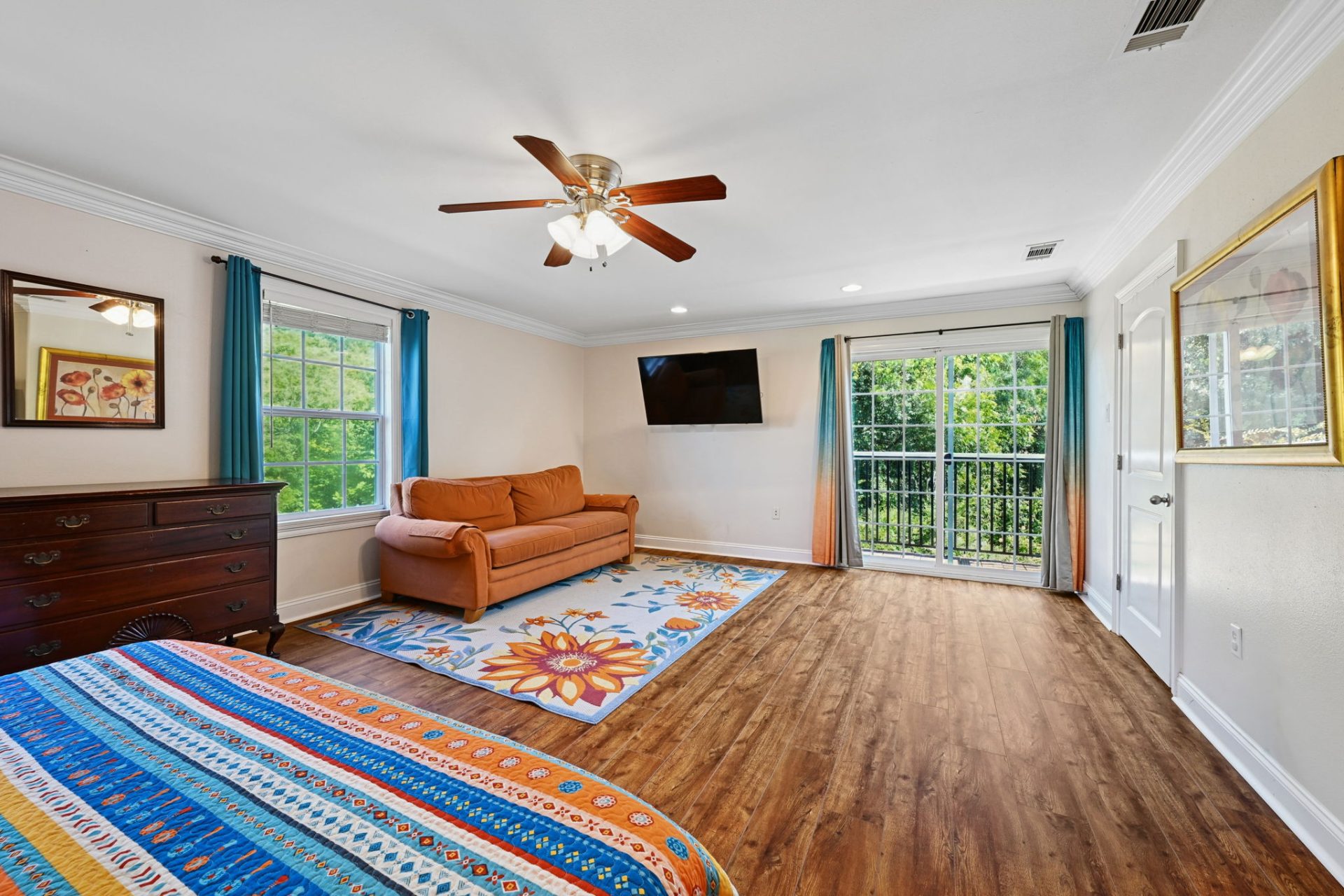The primary suite is a sanctuary, with a soaking tub, double vanity, and private balcony overlooking the woods. Two more bedrooms upstairs give everyone their own space.