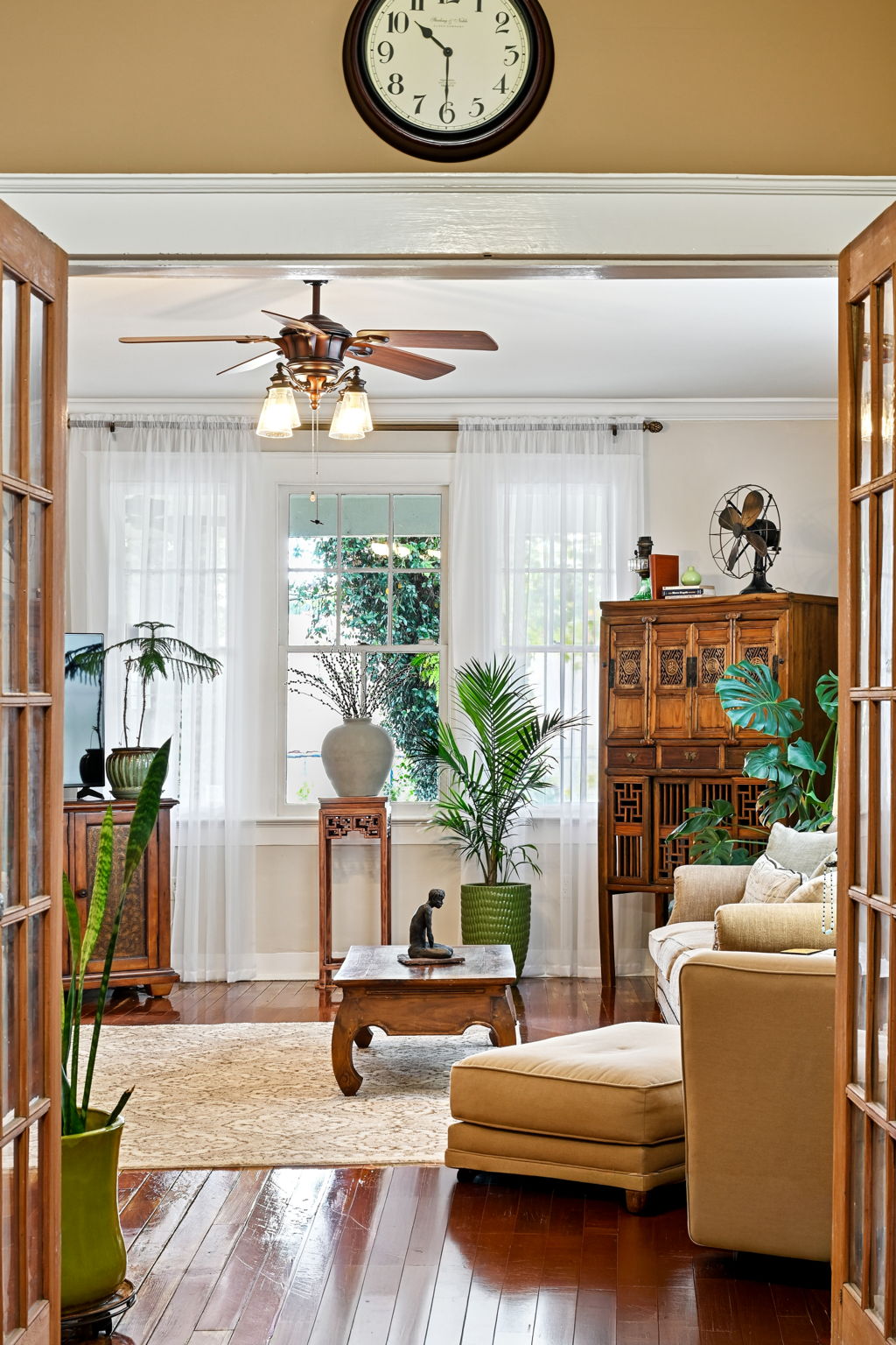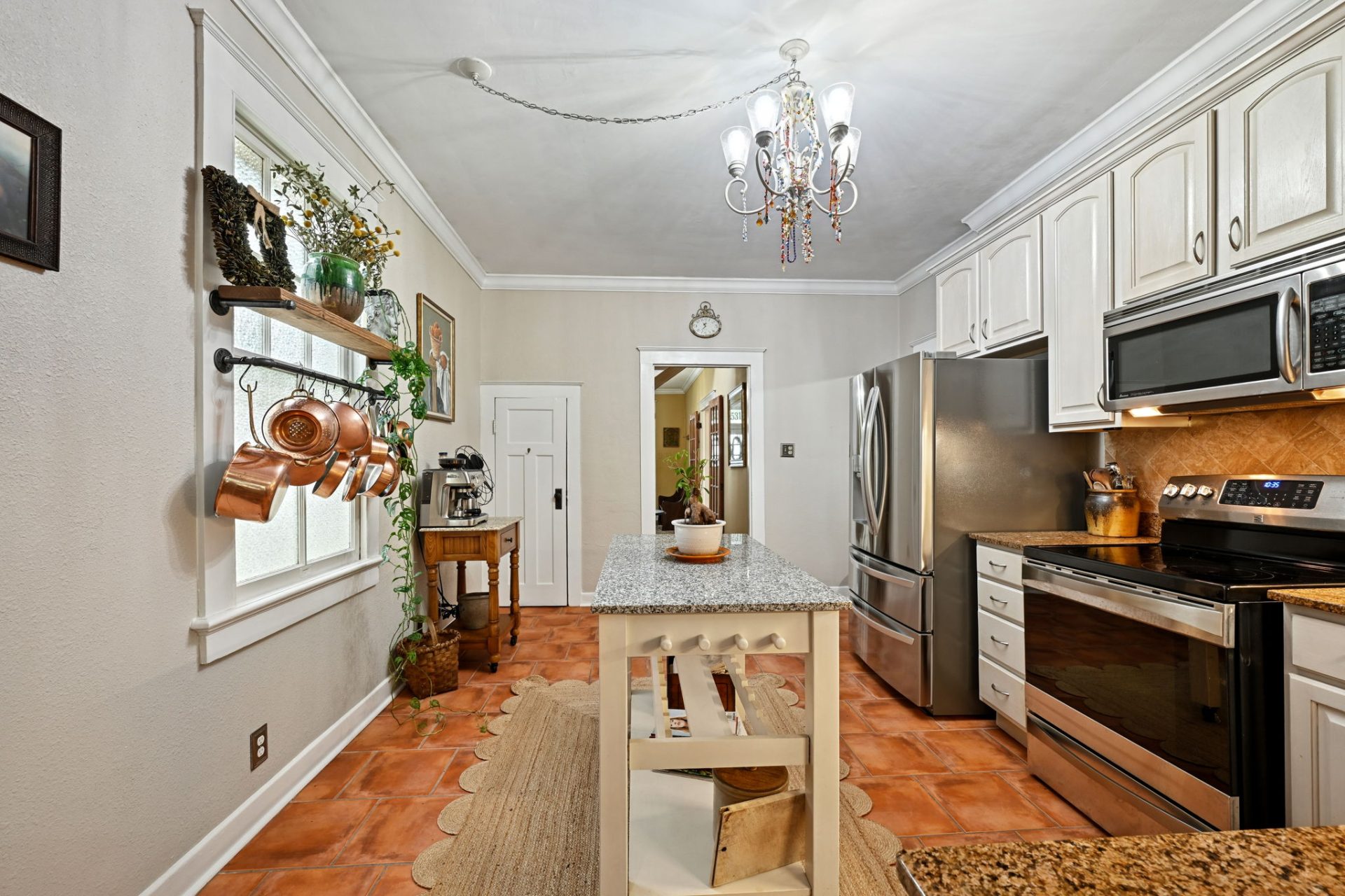 Just beyond the kitchen is a sunny dining room that opens right onto a big, classic back porch and into a magical courtyard. You might start eating every meal al fresco—it’s that kind of vibe.