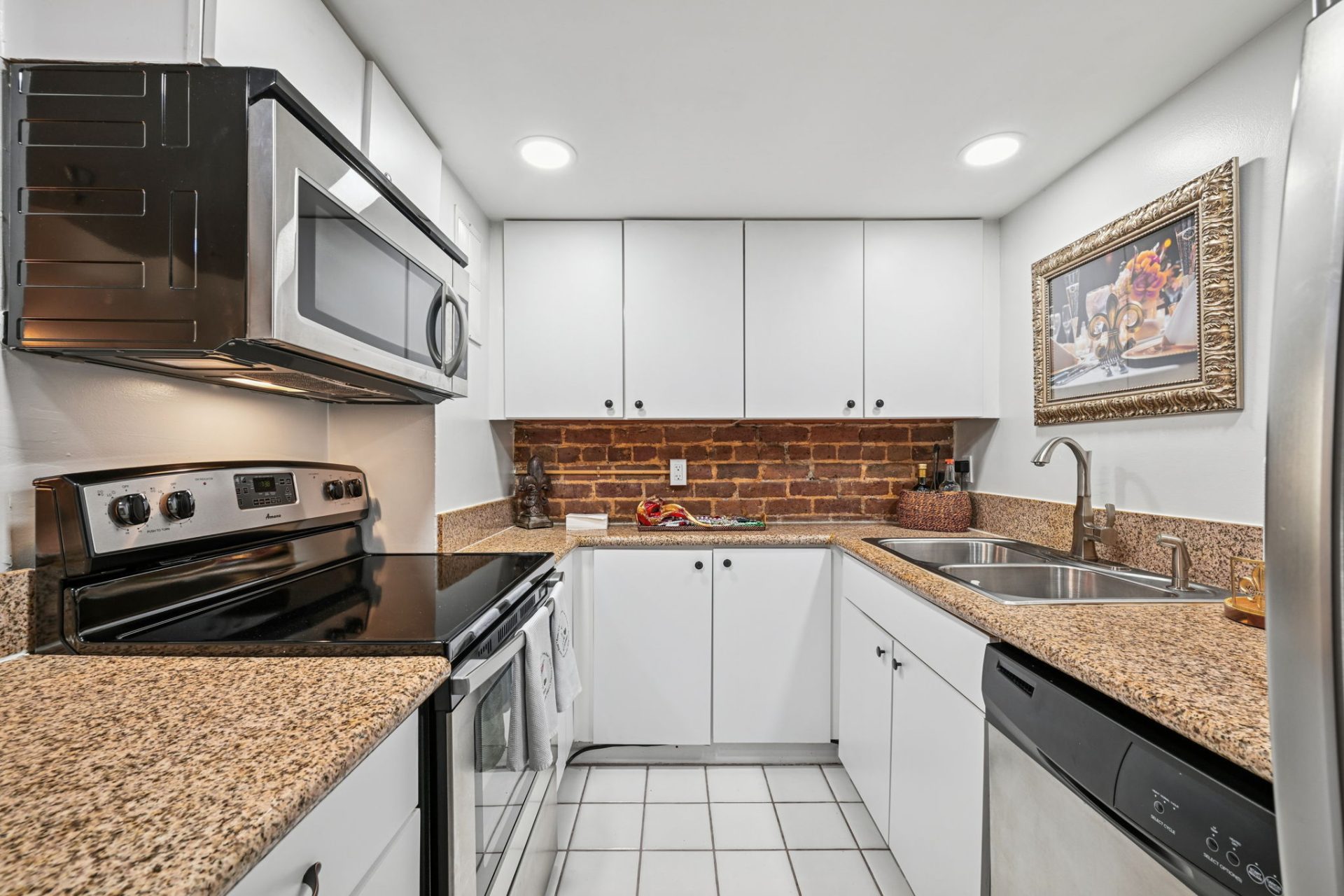 Step inside to find exposed brick walls, wood floors, and soaring ceilings that make the space feel open and airy. The updated kitchen features granite countertops, stainless steel appliances, and great cabinet storage — everything you need packed smartly into an efficient footprint.